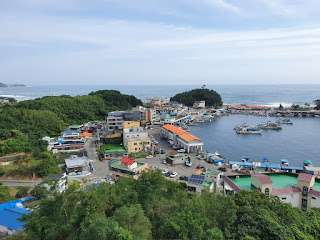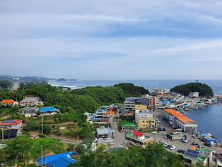 남애항 뒤 양아산이라는 작은 언덕에서 바라보는 남애항 풍경 속의 작은 건물이 아기자기해요.