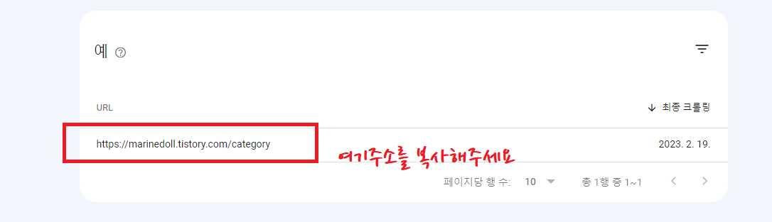 - 색인이 생성되지 않은 주소를 복사하세요.